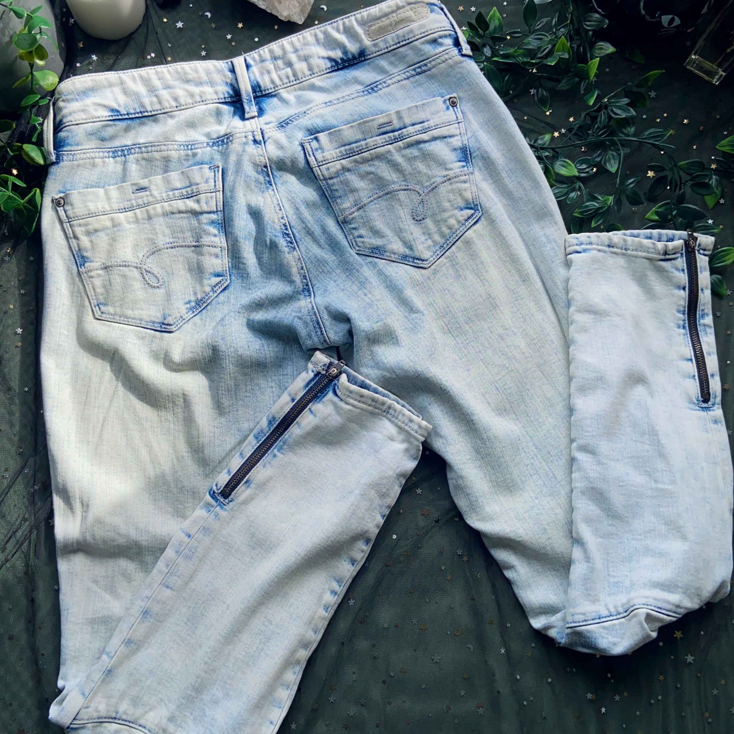 Custom DTF printed blue washed jeans – pre-loved – 1 of 1